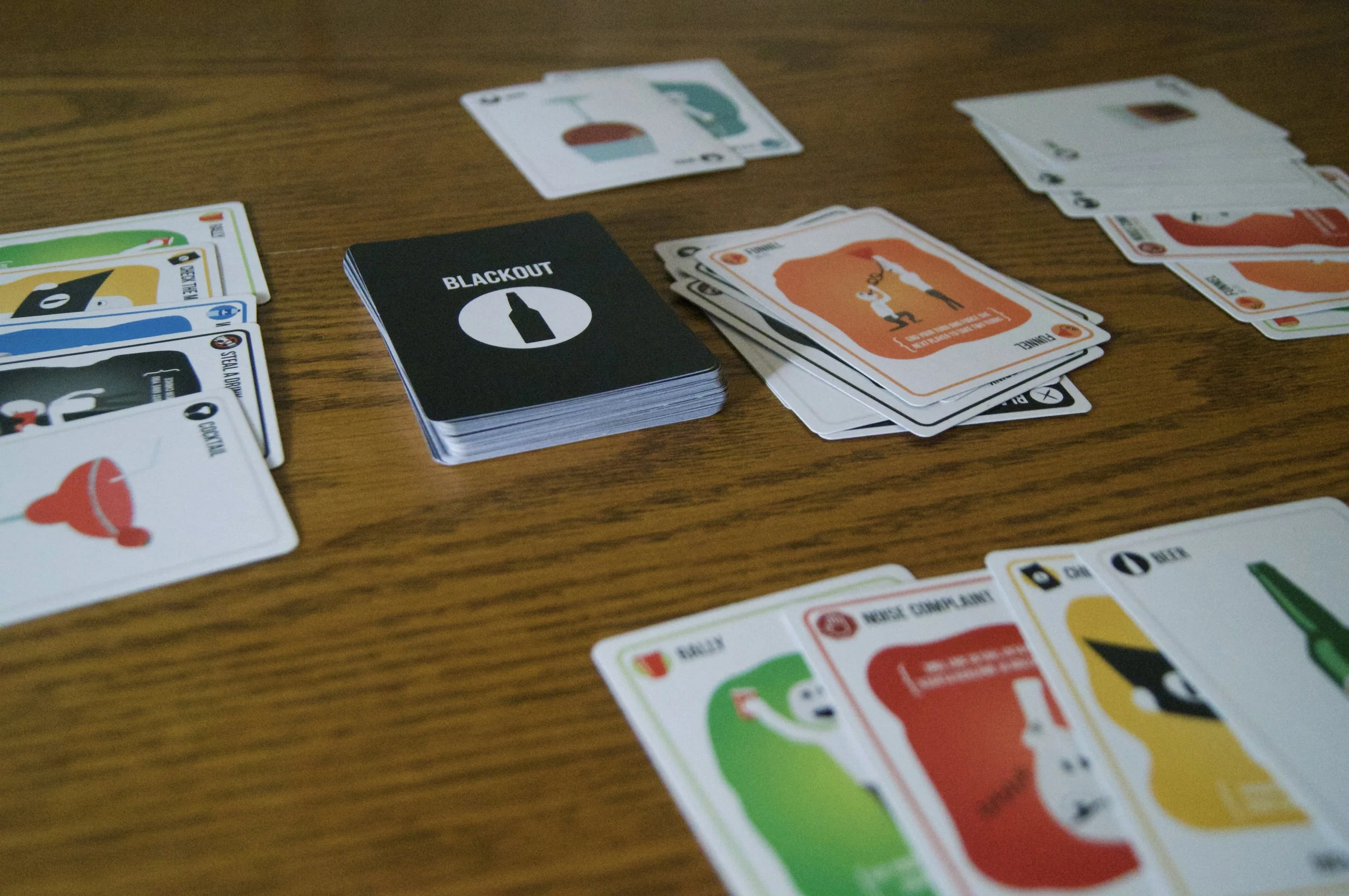 Created as a project in college, Blackout originated as a drinking game concept tied to the Happy Hour Fund, a mutual aid based in Washington DC and LA. With a short turnaround time, I decided to rework an already existing game, Exploding Kittens. By maintaining the game mechanics and basic graphic elements while completely overhauling the art and design, I created a more mature drinking game that preserved the goofiness of the original.